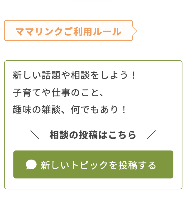 ママリンクの掲示板は、みんなが安心して使えるように、投稿には新規登録(無料)が必要です。