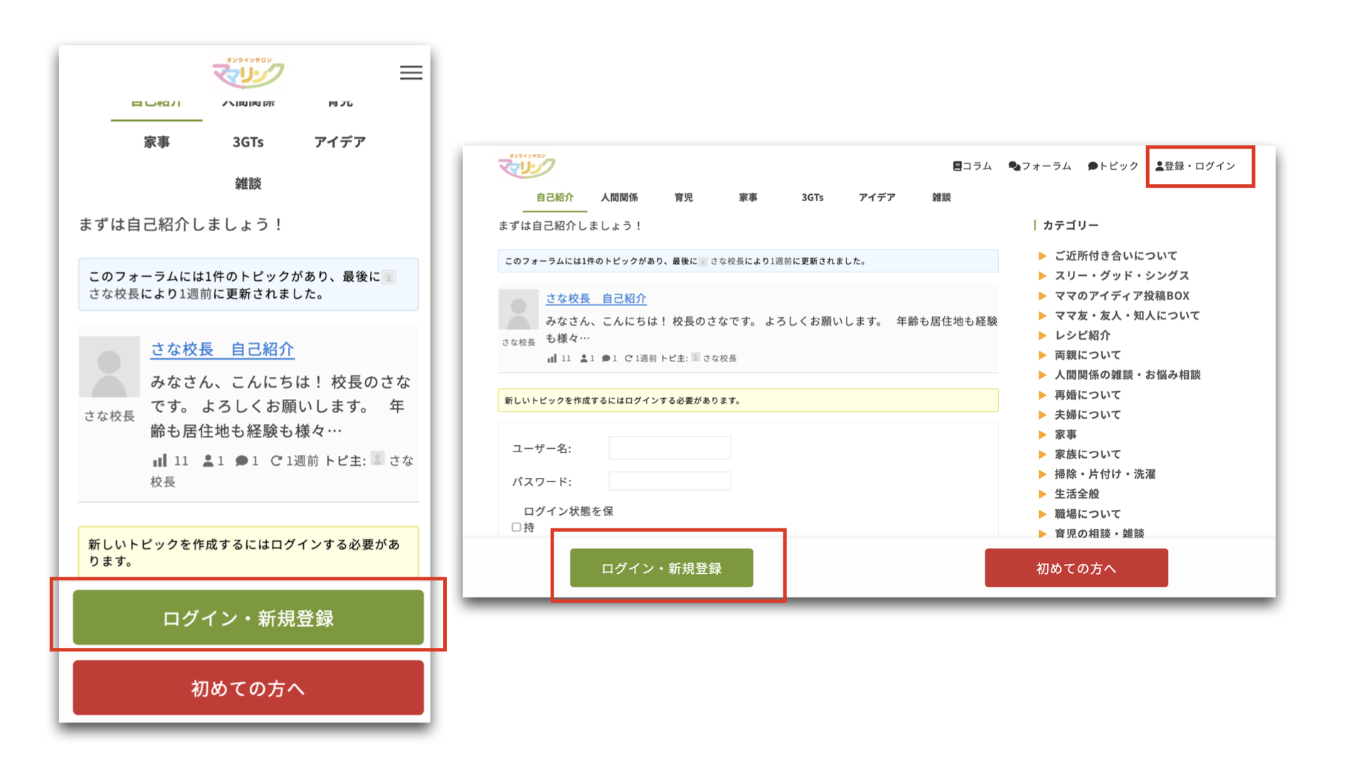 「トピックを立てたい」「誰かに返信したい」場合は、以下の手順で登録をお願いします♪